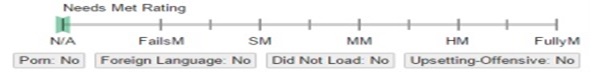 Slightly Meets (SM): Helpful for fewer mobile users. There is a connection between the query and the result, but not a strong or satisfying connection. Many or most users would wish to see additional results.
